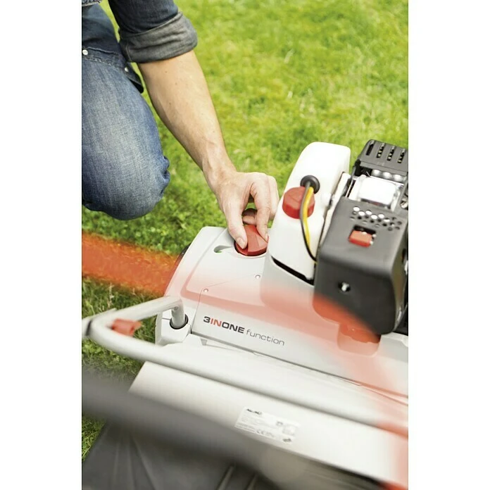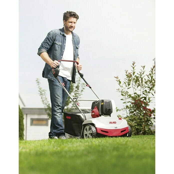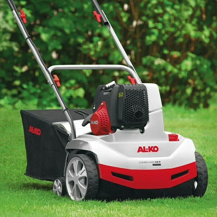 Der Benzin-Vertikutierer AL-KO Combi Care 38 P Comfort eignet sich aufgrund seinem 1,3 kW (entspricht ca. 1,69 PS) starken Benzinmotor auch für größere Gärten und für abgelegene Gelände. Die Holmhöhe lässt sich mit wenigen Handgriffen auf persönliche Bedürfnisse einstellen, somit lässt sich ermüdungsfrei und komfortabel arbeiten. Der Benzin-Vertikutierer bietet eine praktische 3INONEfunction: Mit ihm lässt sich vertikutieren, lüften und fangen. Die Tiefeneinstellung ist in 5 Schritten zentral einstellbar. Bestückt ist die Vertikutierwalze mit 14 robusten Stahlmessern, die dem Benzin-Vertikutierer AL-KO Combi Care 38 P Comfort eine lange Lebensdauer geben. Bei Bedarf kann die Vertikutierwalze mit wenigen Handgriffen durch eine Lüfterwalze mit Stahlfederzinken ausgetauscht werden, wodurch der Rasen mit dem Gerät nicht nur vertikutiert, sondern auch noch gelüftet werden kann. Die Lüfterwalze und ein 55-l-Gewebefangsack sind im Lieferumfang des Geräts enthalten.