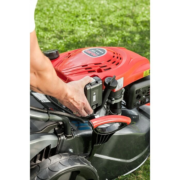 Hoher Innovationsgrad und ein modernes Design. All das vereinen unsere „Comfort -Benzin-Rasenmäher und werden dadurch zum idealen Partner für Ihre Rasenpflege. – – Der Benzinrasenmäher Comfort 46.0 SPI-A – Innovativ und komfortabel, so präsentiert sich der Benzin-Rasenmäher Comfort 46.0 SPI-A von AL-KO. Entwickelt in Deutschland und gefertigt in Österreich bietet dieser Rasenmäher höchste Qualität. Das moderne Design macht ihn zum Hingucker in jedem Garten. Durch ausgewählte Komponenten und Materialien wird die Langlebigkeit des Benzin-Rasenmähers gesteigert. Und mit zuverlässigen und effizienten Features sowie einer innovativen Technik erleichtert Ihnen der Benzin-Rasenmäher Comfort 46.0 SPI-A die Arbeit im heimischen Garten. – Technische Details des Benzin-Rasenmähers Comfort 46.0 SPI-A – Wendig und komfortabel in der Anwendung. Mit einer Schnittbreite von 46 cm sorgt der Benzin-Rasenmäher Comfort 46.0 SPI-A auch in mittelgroßen Gärten (bis zu 1400 m²) für ein schnelles Vorankommen. Die Schnitthöhenverstellung wird bequem zentral 7-fach eingestellt. Die Schnitthöhe kann dabei zwischen 30-80 mm verstellt werden. Der 2,6 kW starke AL-KO Pro 170 Motor mit seiner innovationen E-Start-Technologie macht das Starten zum Kinderspiel. Dank des 1-Gang-Radantriebs und der XXL-Leichtlaufräder gelingt das Vorankommen im Garten mühelos. Die 3INONEfunction bietet Mähen, Fangen und Mulchmähen. Der ergonomisch geformte Führungsholm erhöht den Komfort beim Arbeiten. Der Rasenschnitt gelangt durch das extra hohe Stahlblechgehäuse mit MaxAirflow-Technologie bis nach hinten in den 60 l großen Fangkorb mit Füllstandsanzeige, wodurch dieser bis oben gefüllt wird und so seltener geleert werden muss.
