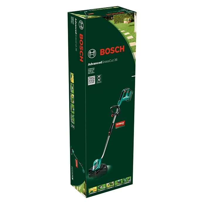Der Akku-Rasentrimmer AdvancedGrassCut 36 von Bosch mit einer Schnittbreite von 30 cm sorgt mit seiner 2-Speed-Motor-Kontrolle für die beste Schnittgeschwindigkeit. Dank seinem ergonomischen Design, dem Soft-Grip Besatz und der halbautomatischen Fadenverlängerung lässt sich effizient und komfortable arbeiten. Für eine einfache Handhabung und Manövrierbarkeit sorgt zudem das niedrige Eigengewicht des Akku-Rasentrimmers. Angetrieben wird er mit einem 36 V Li-Ionen Akku aus der Bosch 36 V-Akku-Familie, welcher separat erhältlich ist.