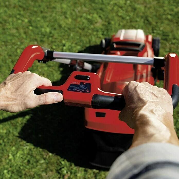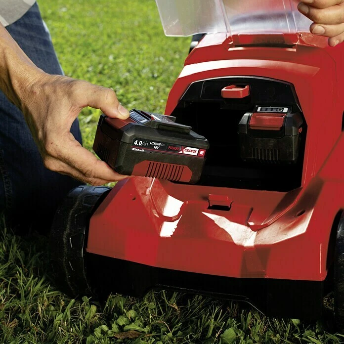 Der Akku-Rasenmäher GE-CM 36/37 Li-Solo von Einhell ist ein stromnetzunabhängiges, kraftvolles Gerät für Rasenflächen bis zu 400 Quadratmetern. Die Akkus, welche separat erhältlich sind, sind Teil der Power X-Change Familie von Einhell und sind damit für jedes Gerät dieser Serie nutzbar. Der Motor kann bis zu 3.500 Umdrehungen pro Minute erreichen. Der Aluminium-Führungsholm ist besonders leicht und stabil konzipiert. Durch die Höhenverstellbarkeit lässt er sich an jede Körpergröße anpassen. Zur platzsparenden Aufbewahrung lässt sich der Holm zusammenklappen. Die zentrale Schnitthöhenverstellung ist sechsstufig. Der Rasenmäher hat eine Schnittbereite von 37 Zentimetern. Ein randnahes Mähen wird durch den Rasenkamm ermöglicht. Der integrierte Tragegriff sorgt für eine komfortable Handhabung. Die Grasfangbox mit Füllstandsanzeige kann bis zu 45 Liter fassen, die großflächigen Räder schonen den Rasen während des Mähprozesses. Zum Betrieb sind zwei 18 V-Akkus notwendig.