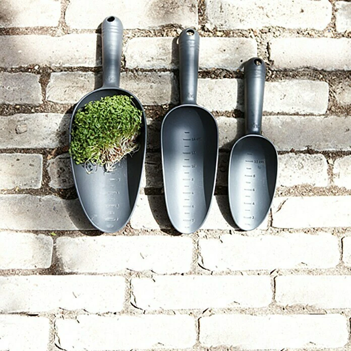 Die Schaufel aus der Reihe Green Basics von elho unterstützt Sie, wenn Sie ein Pflanzloch ausheben möchten. Der Griff der Handschaufel ist elegant und ergonomisch geformt und liegt damit sehr komfortabel in der Hand. Darüber hinaus ist die Schaufel mit Maßangaben versehen, damit Sie immer exakt wissen, wie tief Sie schon gegraben haben. Dank der speziellen Beschichtung bleibt die Erde an der Handschaufel nicht so schnell haften und somit haben Sie weniger Aufwand mit der Reinigung. Mit dieser besonderen Schaufel behalten Sie saubere Finger. Sie ist sehr leicht und besteht aus recyceltem Kunststoff, der schmutzresistent und robust ist. Ideal geeignet für alle Gartenarbeiten und kann beim Umgraben oder zum Umtopfen verwendet werden.