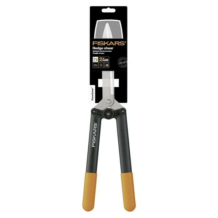 Die Fiskars PowerLever Getriebe-Heckenschere eignet sich besonders gut zum Form- und Zurückschneiden von Hecken, Sträuchern und Büschen. Das Zusammenspiel der scharfen Klingen mit dem patentierten Getriebemechanismus ermöglicht eine 2-fach höhere Schneidleistung. Die Heckenschere besticht zudem durch ihre leichten Arme mit gelenkschonendem Puffer, sodass ein langes Arbeiten ″“ ohne großen Kraftaufwand ″“ möglich ist. Die scharfen Klingen sind außerdem antihaftbeschichtet.