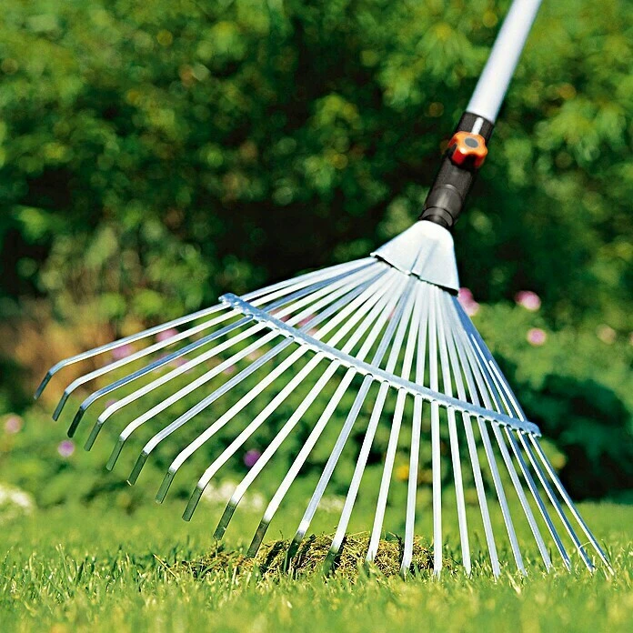 Der GARDENA Combisystem-Laubbesen eignet sich optimal zum Zusammenfegen von Laub, Grasschnitt und anderen Gartenabfällen. Die elastischen und verzinkten Federstahlzinken, sowie eine große Arbeitsbreite, ermöglichen ein schnelles und effektives Arbeiten. Der Fächerbesen passt zu allen GARDENA Combisystem-Stielen, wobei GARDENA eine Stiellänge von 130 cm empfiehlt, abhängig von der Körpergröße.