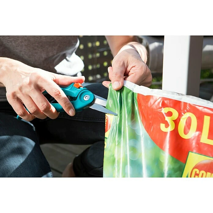 Die Gardena Balkonschere ist ideal für den Einsatz auf Balkonen und Terrassen. Die Schere eignet sich hervorragend zum Schneiden von Blumen, Kräutern, dünnen Zweigen und vielem mehr. Die Klingen sind aus hochwertigem, rostfreiem Stahl gefertigt. Die Schere hat zwei verstellbare Griffpositionen und eine Auktionssperre. Mit 25 Jahren Garantie.