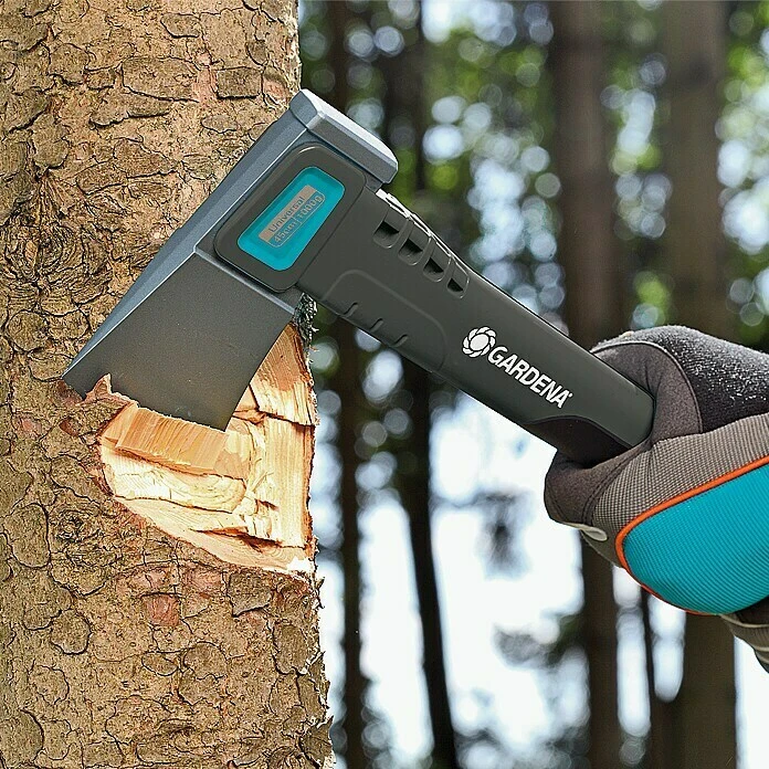 Die kleine Universalaxt 1000 A von GARDENA ist ideal für alle kleineren Arbeiten rund ums Holz wie beispielsweise Entasten, Fällen, Spalten. Die Axt verfügt über eine speziell beschichtete Oberfläche, welche ein einfaches Eindringen in das Holz gewährleistet. Die anwendungsangepasste Klingenform wurde speziell für das Fällen und Entasten von Bäumen und zum Entfernen von Wurzelwerk entwickelt. Der glasfaserverstärkte Kunststoffgriff sorgt für eine erhöhte Robustheit und Langlebigkeit. Der gut ausbalancierte Schwerpunkt, der nahe am Axtkopf liegt, garantiert optimale Balance und somit eine erhöhte Schlag- und Spaltkraft. Die Hammerfläche ermöglicht ein einfaches Eintreiben von Spaltkeilen.