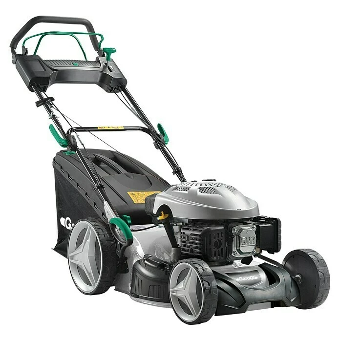 Der kraftvolle GBD-46R Rasenmäher von Gardol besticht durch sein modernes Design und einem leistungsstarken Motor mit 2,9 kW (entspricht ca. 3,77 PS). Dank der extra großen, kugelgelagerten Hinterräder mit “easy to push”-Funktion werden Bodenunebenheiten besser ausgeglichen und garantieren so ein schöneres Schnittbild und eine komfortable Führung. Die Schnittbreite des Rasenmähers beträgt 46 cm und ist für Rasenflächen bis 1.500 m² geeignet. Seine Schnitthöhe ist von 25 mm bis 75 mm 7-fach verstellbar. Der großzügige 60 l-Harttop Auffangsack mit Füllstandsanzeige sammelt Rasenschnitt zuverlässig ein. Durch die praktische 3-in-1 Funktion kann man jedoch frei entscheiden, ob der Fangsack das Mähgut auffängt, ob es zur Seite ausgeworfen werden soll oder ob der Rasenschnitt zum Mulchen ausgeworfen wird. Um die verschiedenen Funktionen nutzen zu können, werden ein Kombi-Messer und ein Mulchkit mitgeliefert. Das robuste Gehäuse aus Stahl verspricht eine lange Lebensdauer und durch einen ergonomischen Führungsholm mit Deluxe-Cockpit und Softgrip-Handgriff ist für komfortables Rasenmähen gesorgt.
