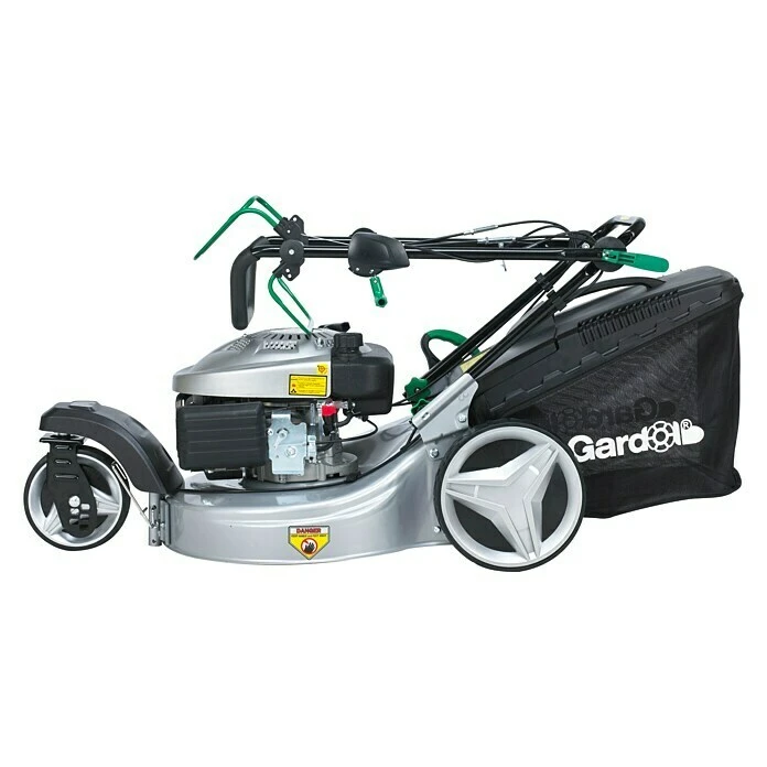 Der kraftvolle GBD-51R Trike-Rasenmäher von Gardol besticht durch sein modernes Design und einen leistungsstarken Motor mit 2,9 kW (entspricht ca. 3,77 PS). Dank der kugelgelagerten Hinterräder mit “easy to push” -Funktion werden Bodenunebenheiten besser ausgeglichen und garantieren so ein schöneres Schnittbild und eine komfortable Führung. Die Schnittbreite des Rasenmähers beträgt 51 cm und ist für Rasenflächen bis 1.800 m² gut geeignet. Seine Schnitthöhe ist von 25 mm bis 75 mm 6-fach zentral verstellbar. Der großzügige 60 l-Harttop Auffangsack mit Füllstandsanzeige sammelt den Rasenschnitt zuverlässig ein. Durch die praktische 3-in-1 Funktion kann man jedoch frei entscheiden, ob der Fangsack das Mähgut auffängt, ob es zur Seite ausgeworfen werden soll oder ob der Rasenschnitt zum Mulchen ausgeworfen wird. Um die verschiedenen Funktionen nutzen zu können, werden ein Kombi-Messer und ein Mulchkit mitgeliefert. Das robuste Gehäuse aus Stahl verspricht eine lange Lebensdauer und durch einen ergonomischen Führungsholm mit Soft-Grip Aufsatz ist für komfortables Rasenmähen gesorgt.