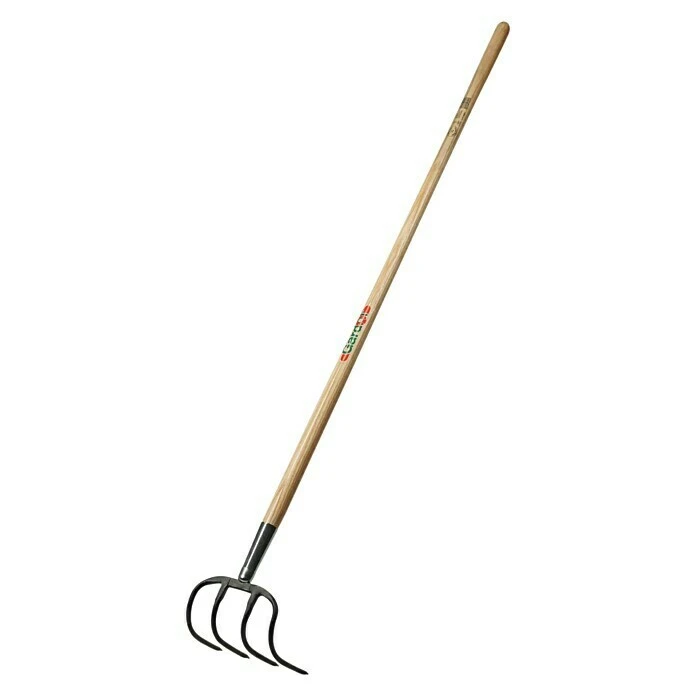 Die Dunghacke von Gardol besitzt einen Gerätekopf aus vier runden Zinken mit den Maßen 19 x 16 cm. Der Stiel ist 135 cm lang und ist aus Esche gefertigt.