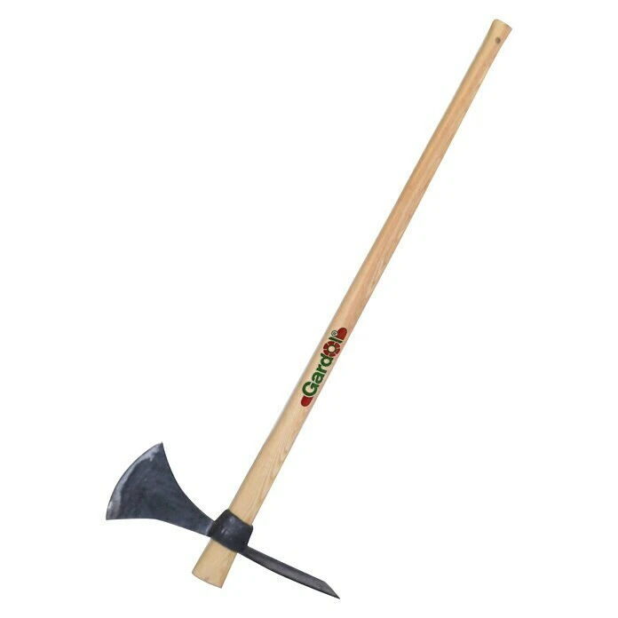 Die Wiedehopfhacke von Gardol besitzt sowohl ein Breit- als auch ein Schmalblatt und eignet sich dadurch für unterschiedlichste Arbeiten. Der geschmiedete Gerätekopf ist 1,8 kg schwer und ist mit einem 105 cm langen Stiel aus Holz verbunden.