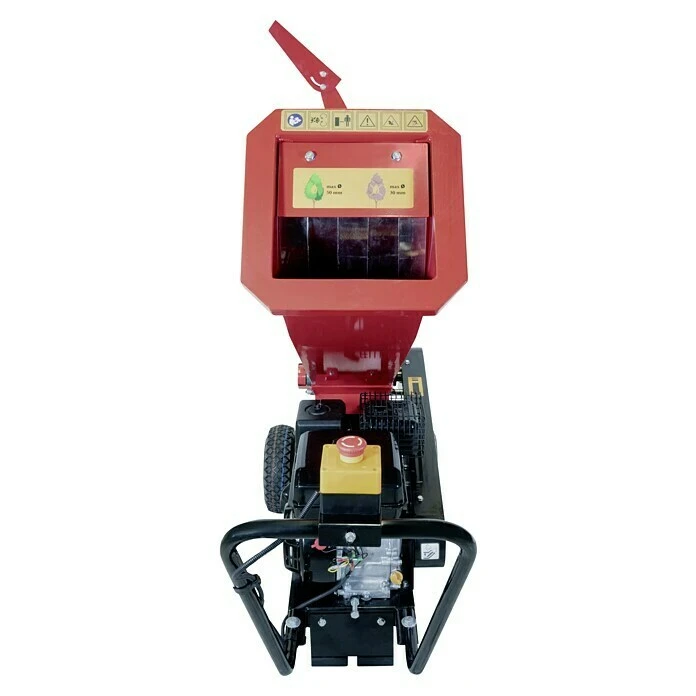 Der Güde Benzin-Häcksler GH 5.6-50 überzeugt mit einem starken Power-Engine 4-Takt Motor mit 4,1 kW bei 3.600 U/min und einem Hubraum von 212 cm³. Er ist ideal zum Zerkleinern von frischen Ästen mit einem maximalen Durchmesser von 5 cm und trockenen Ästen mit maximal 3 cm Durchmesser. Außerdem verfügt der Häcksler über einen praktischen Ein- und Ausschalter, einen Notausschalter, einen Keilriemenantrieb, einen drehbaren Auswurfschacht, große, luftbereifte Räder, eine Ölmangelsicherung und einen Spritzschutz.