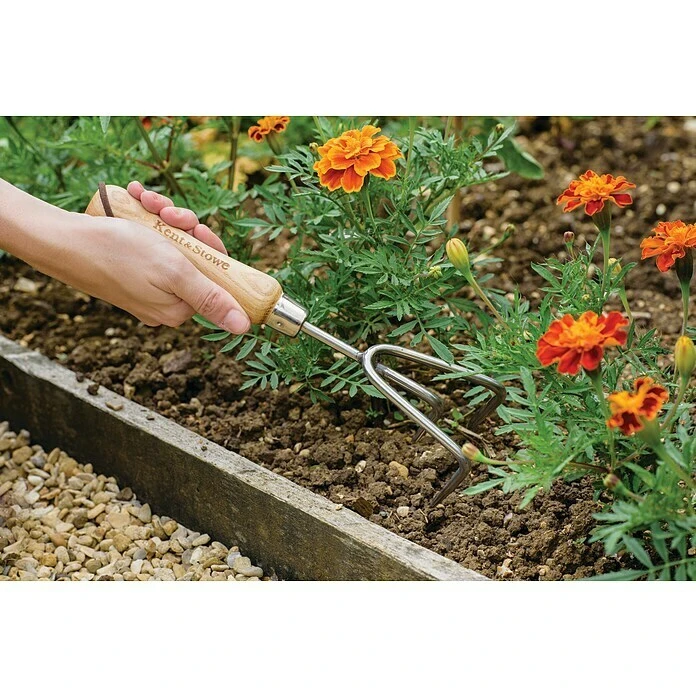 Der Kent & Stowe 3-Zinken Hand-Grubber ist bestens zum Aufbrechen verdichteter Böden und deren Belüftung geeignet. Ein lockerer und gepflegter Boden ist für optimales Pflanzenwachstum wichtig.