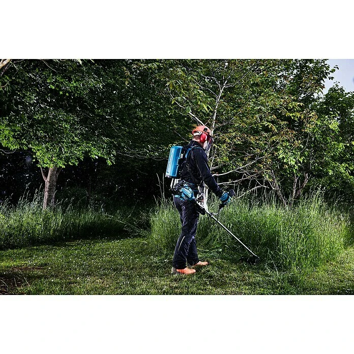 Der Makita Akku-Freischneider DUR369AZ ist ein handlicher und professioneller Freischneider. Er wird mit zwei in Reihe geschalteten 18 V Akkus betrieben, die parallel in separate Akkuhalterungen eingeschoben werden und verfügt über eine 3-stufige Drehzahleinstellung. Mit seinem leistungsstarken 1.000 Watt-Motor und einem Schnittkreis von 43 cm eignet er sich ideal zum Entfernen von Grasschnitt und Wildwuchs. Der Zweihandgriff mit asymmetrischer Form und der beigelieferte Hosenträgergurt sorgen für ein komfortables Arbeiten. Durch die integrierte Automatic torque Drive Technology wird während des Betriebs die Drehzahl automatisch reguliert, um somit je nach Anforderung eine optimale Leistung zu erzielen. Durch die Active Feedback sensing Technology wird der Motor beim Blockieren des Werkzeuges gestoppt, um somit Beschädigungen des Gerätes zu verhindern.