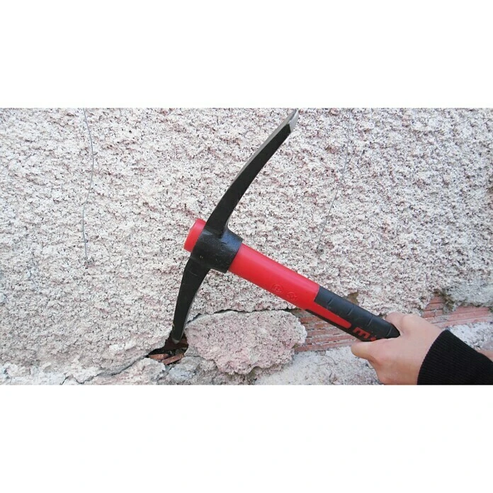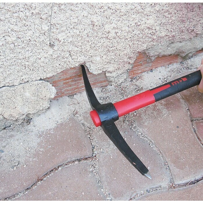 Die Peddinghaus Minikreuzhacke sticht durch Ihren 3 Komponenten Stiel hervor. Dieser besteht aus einem Glasfaserkern, der weich, leicht und bruchfest ist, eine vibrationsdämpfende Polypropylenschicht sowie einer rutschfesten und Blasenfreien Elastomerschicht. Hierdurch ist ein langes Sicheres und Gelenkschonendes arbeiten möglich und er hat eine lange Lebensdauer. Der Kopf ist aus kohlenstoffreichem Stahl geschmiedet und gehärtet für eine optimale Schnitt- und Schlagfestigkeit. Er ist poliert und anschließend mit schwarzer Strukturlackierung versehen. Der Pickel kann verwendet werden zum Entfernen von Putz, Reinigen von Fugen, Kratzen zwischen den Steinen sowie jegliche Erdarbeiten. Die Pinne kann zum Abkratzen alter Putze, Spalten von Ziegeln und ebenfalls für jeglicher Erdarbeiten verwendet werden.