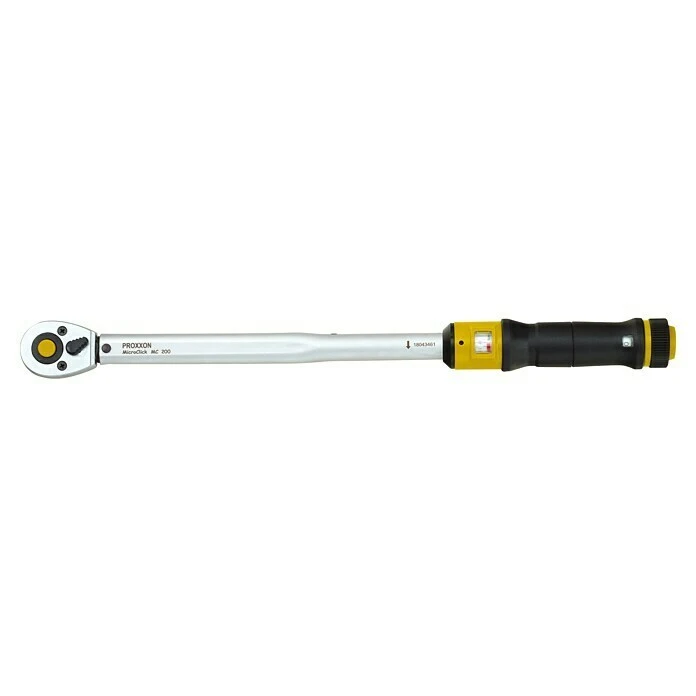 Der Proxxon Drehmomentschlüssel MicroClick MC 200 ist ein Präzisionswerkzeug mit hoher Genauigkeit (Toleranz nach ISO 6789 +/- 3%). Er besitzt einen 1/2″-Vierkantantrieb (12,5 mm). Außerdem ist er mit einem Ratschenmechanismus ausgestattet, der eine Umschaltung von Rechts- auf Linksgang ermöglicht. Dank der automatischen Kurzauslösung ist beim Erreichen des vorgewählten Drehmomentes ein Click-Signal deutlich hör- und spürbar. Der Aufsatz sitzt fest und löst sich auf Knopfdruck von selbst durch den praktischen Entriegelungsmechanismus. Der stabile und ovale Schaft ist aus Stahl und besitzt optimalen Rostschutz, da er 2x vernickelt und anschließend mattverchromt wurde. Der Drehmomentschlüssel wurde Stück für Stück kalibriert und endgeprüft. Außerdem ist er mit einer dauerhaft gelaserten Seriennummer zur Identifikation versehen. Die deutlich lesbare Analoganzeige dient der einfachen Drehmoment-Vorwahl. Der ergonomischer Griff bewirkt, dass man das Werkzeug automatisch mittig greift, was wichtig für exaktes Auslösen ist. Das Drehmoment kann durch Drehen des gerändelten Ringes simpel vorgewählt und an der Analoganzeige deutlich abgelesen werden. Die zusätzliche Mikro-Skala dient der Feinjustierung. Die Position wird dann durch Einschubring fixiert. Geliefert wird das Werkzeug im praktischen Kunststoffkoffer.