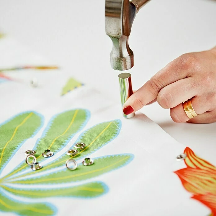 Die Rapid Ösen sind aus Stahl gefertigt mit silberfarbener Oberfläche, wodurch sie eine gute Haltbarkeit und eine ansprechende Optik ermöglichen. Die stabilen Ösen sind besonders geeignet für Stoff, Planen, Ölzeug, Leder und Vielem mehr. Zum einfachen Verarbeiten ist im Lieferumfang das Einschlagwerkzeug enthalten, es wird zusätzlich nur ein Hammer benötigt.