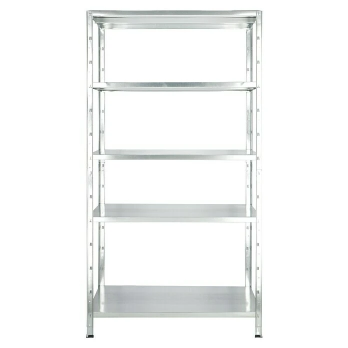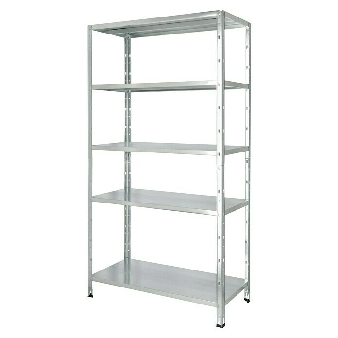 Das Regalux Steckregal bietet Stauraum auf fünf Böden mit einer jeweiligen Traglast von 65 kg. Der Aufbau ist dank des Stecksystems einfach und problemlos. Durch die verzinkte Oberfläche ist das Regal vor Rost geschützt. Das Befestigen an einer Wandfläche ist optional möglich und sorgt für zusätzliche Stabilität.
