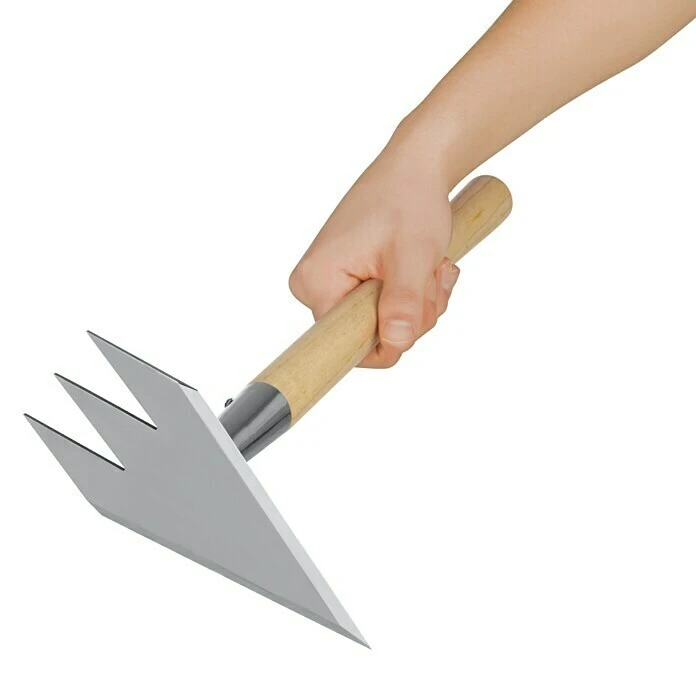 Die kompakte 8 in 1 Ruwi Miniharke vereint die verschiedensten Gartengeräte und macht Grubber, Harke und Co. überflüssig! Egal ob Sie Ihren Garten von Gestrüpp und Gras befreien, Unkraut jäten oder ein Saatbeet vorbereiten möchten, die Miniharke hat viele Talente und wird Ihr ständiger Begleiter im Garten. Mit ihrem handlichen Format ist sie ideal für die schnelle, unkomplizierte Gartenarbeit geeignet. Ganz nebenbei schaffen Sie jede Menge Platz im Geräteschuppen, denn andere Gartenhelfer werden überflüssig. Die 8 in 1 Ruwi Miniharke ist aus poliertem Edelstahl mit einem stabilem Naturholz-Stiel gefertigt und macht auch bei starker Beanspruchung nicht schlapp. Sie ist für Rechts- und Linkshänder geeignet. Holen Sie sich diesen Alleskönner jetzt auch in Ihren Garten.