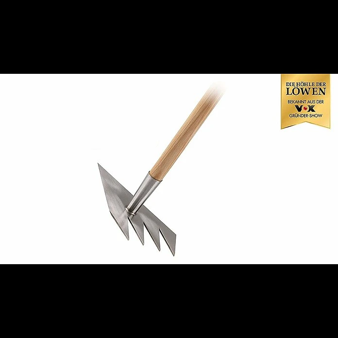 Die Ruwi Multiharke vereint die verschiedensten Gartengeräte und macht Grubber, Harke und Co. überflüssig. Um sich die Gartenarbeit zu erleichtern, machte der findige Tischlermeister Rudolf Wild aus einer handelsüblichen Hacke ein rückenfreundliches Arbeitsgerät: die 8-in-1-Ruwi-Multiharke. Egal, ob Sie Ihren Garten von Gestrüpp und Gras befreien, Unkraut jäten oder ein Saatbeet vorbereiten möchten, die Multiharke hat viele Talente und wird Ihr ständiger Begleiter bei der Gartenarbeit sein. Ganz nebenbei schaffen Sie jede Menge Platz in Ihrem Gartengeräte-Schuppen, denn andere Gerätschaften werden überflüssig. Die 8-in-1-Ruwi-Multiharke ist aus poliertem Edelstahl mit einem stabilen Eschenholz-Stiel gefertigt und macht auch bei starker Beanspruchung nicht schlapp. Sie ist für Rechts- und Linkshänder geeignet.