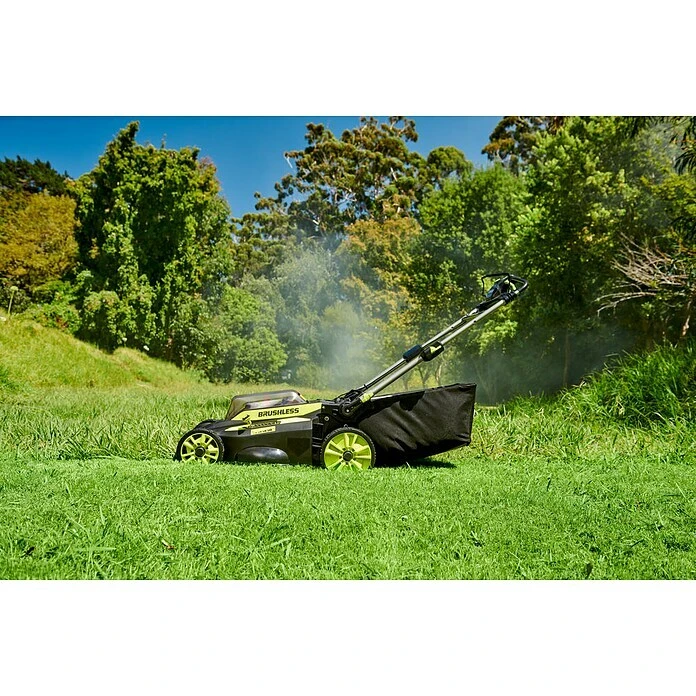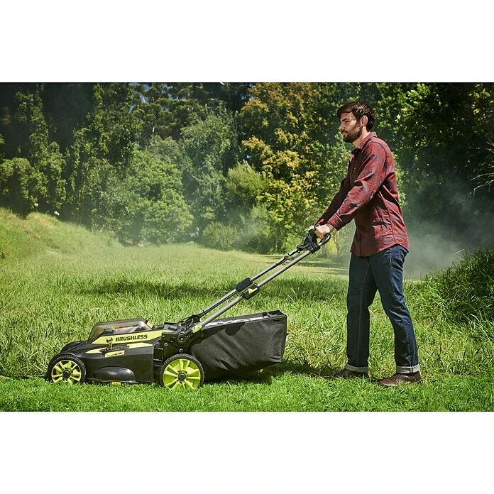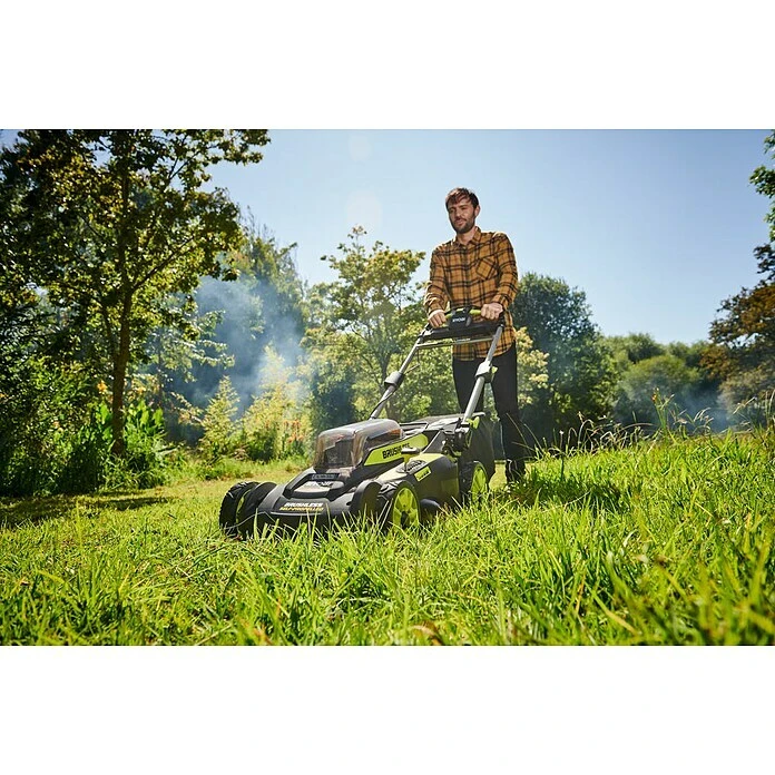 Der Ryobi Akku-Rasenmäher RY36LMX51A-160 mit einer Akkuleistung von 216 Wattstunden überzeugt mit einem bürstenlosen Motor für eine besonders hohe Schneid- und Absackleistung. Eine Akkuladung des leistungsstarken Akkus reicht für etwa 1000 m². Der Rasenmäher hat eine weite Schnittbreite von 51 cm und eine 7-fache, zentrale Schnitthöhenverstellung, die sich je nach Situation komfortabel verstellen lässt. Zum Produktumfang zählen weiterhin ein ergonomischer Komforthandgriff für eine bequeme Arbeitshaltung, der sich zur platzsparenden Aufbewahrung zusammenklappen lässt, ein Rasenkamm für randnahes Mähen sowie ein Grasfangkorb mit 70 l Fassungsvermögen. Auch ein Arbeiten bei schlechten Sehbedingungen ist dank eingebauter LED-Scheinwerfer problemlos möglich.