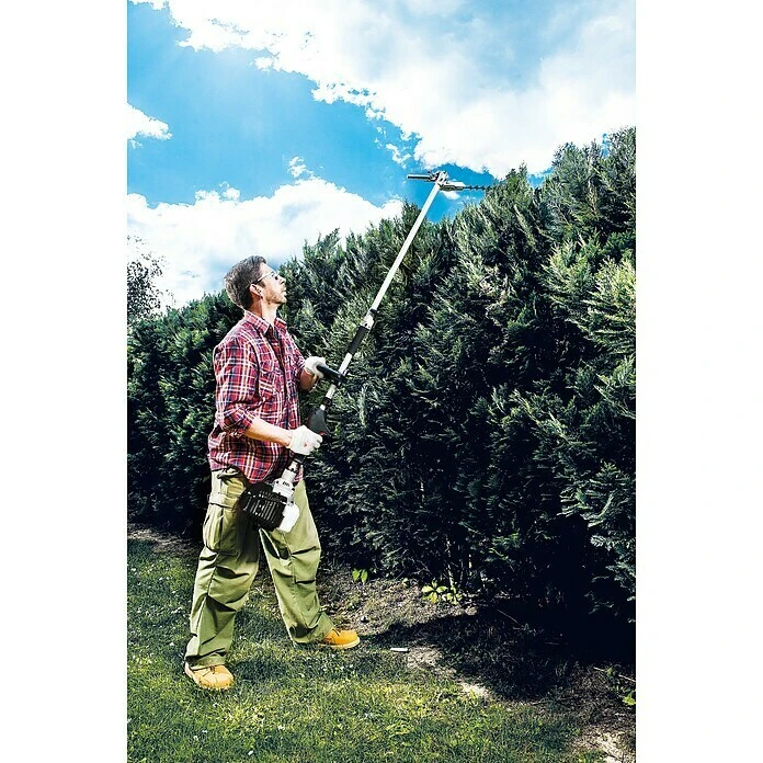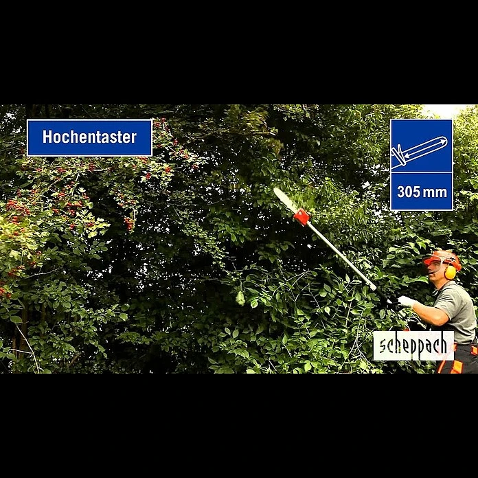 Das Scheppach 4 in 1 Multifunktionsgerät vereint alle im heimischen Garten benötigten Geräte in einem. Mit nur einem Handgriff kann der Rasentrimmer in einen Hochentaster, eine Motorsense oder eine Heckenschere verwandelt werden und durch die Verlängerung können auch weit entfernte Äste oder Hecken erreicht werden. Die Vibrationsgedämpfte Bauweise sorgt dabei für angenehmes Arbeiten. Ein Leistungsstarker 32,6 cm3 2-Takt-Motor bietet ein hohes Maß an Kraft für alle Aufgaben im heimischen Garten. Dank Easy-Start-System und Primer ist das Gerät leicht zu starten. Die vibrationsgedämpfte Bauweise sorgt für angenehmes Arbeiten. Als zusätzlich Vereinfachung ist eine Tipp-Automatik Fadenverlängerung geboten. Heckenschere: 24 mm max. Astdurchmesser; 406 mm Schwertbreite – Hochentaster: 254 mm Schnittlänge – Rasentrimmer: – Doppelfadenspule; 430 mm Schnittbreite; Motorsense: 255 mm Schnittbreite. Diese Ausführung kommt mit einem 10″ Oregon Schwert, einem Profi-Schultergurt und einer Schutzbrille.