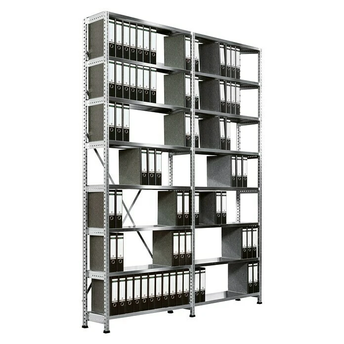 Scholz Aktenregal Grundelement Länge: 1.050 Mm, Breite: 300 Mm, Höhe: 2.640 Mm, Traglast: 80 Kg/Boden, Anzahl Böden: 8 Stk.