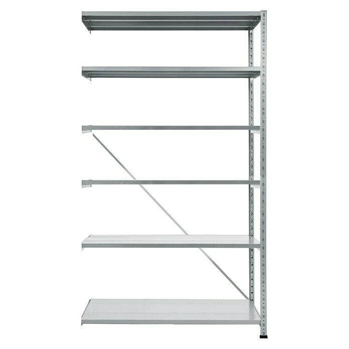 Scholz Metall-Lagerregal Anbauelement Länge: 700 Mm, Breite: 1.210 Mm, Höhe: 2.280 Mm, Traglast: 210 Kg/Boden, Anzahl Böden: 6 Stk.