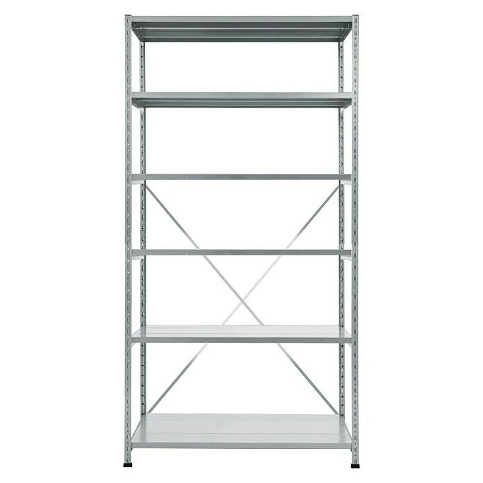 Scholz Metall-Lagerregal Grundelement Länge: 600 Mm, Breite: 1.050 Mm, Höhe: 2.280 Mm, Traglast: 200 Kg/Boden, Anzahl Böden: 6 Stk.