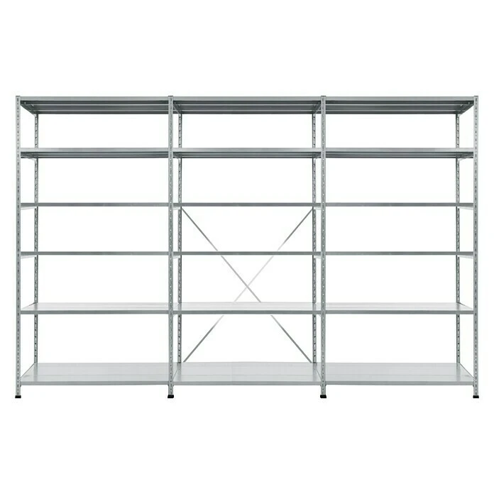 Scholz Metall-Lagerregal SE Länge: 400 Mm, Breite: 3.070 Mm, Höhe: 2.280 Mm, Traglast: 140 Kg/Boden, Anzahl Böden: 6 Stk.