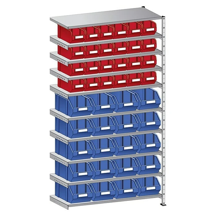 Scholz System Metall-Sichtlagerkastenregal Anbauelement S300 320 X 1.010 X 1.920 Mm, Traglast: 90 Kg/Boden, Stecken