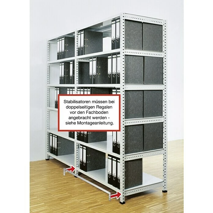 Der System Stabilisator von Scholz ist ein Zubehör eines umfangreichen Regalsystems welches ideal für all jene geeignet ist, die ein flexibles Regalsystem benötigen das sich vielseitig und leicht in die vorhandenen Räumlichkeiten einpassen und erweitern lässt. Egal ob Büro, Wohnung, Keller, Garage oder Vorratsraum, dieses System kann individuell nach Ihren Wünschen und Anforderungen gestaltet werden. Der Stabilisator dient der Stabilisierung der Regale und wird anstelle von Diagonale montiert. Auf diese Weise wird eine beidseitige Bedienung der Regale ermöglicht. Die umfangreiche Auswahl dieses Systems an Regalen, Grundelementen und Zubehör entnehmen Sie bitte der angehängten Produktübersicht.