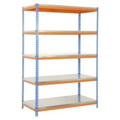 Simonrack Bricoforte Metall-Schwerlastregal L X B X H: 45 X 120 X 200 Cm, Traglast: 300 Kg/Boden, Anzahl Böden: 5, Blau/Orange, Material Boden: Metall