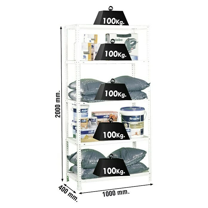 Simonrack Comfort Metallregal L X B X H: 40 X 100 X 200 Cm, Traglast: 100 Kg/Boden, Anzahl Böden: 5 Stk., Schrauben, Weiß