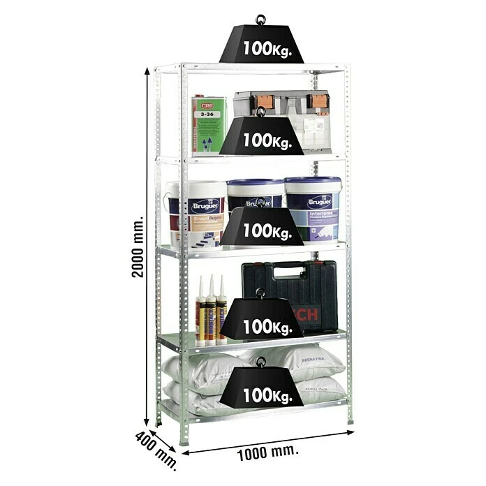 Simonrack Comfort Metallregal L X B X H: 50 X 100 X 200 Cm, Traglast: 100 Kg/Boden, Anzahl Böden: 5 Stk., Schrauben, Silber