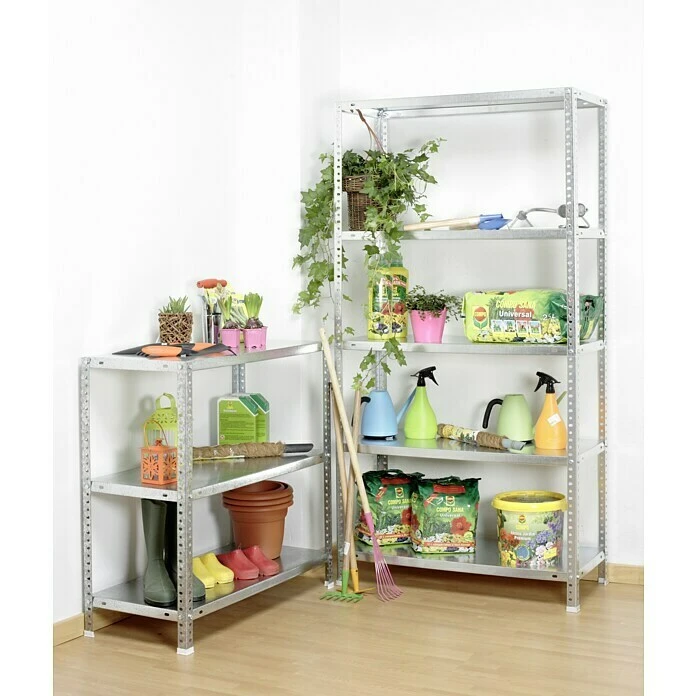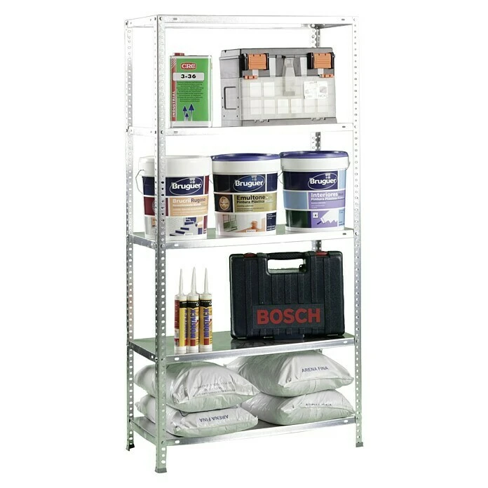 Das Metallregal von Simon Rack ist mit einer Traglast von 100 kg pro Boden das ideale Regal für den Haushalt, die Garage oder den Keller. Ausgestattet mit insgesamt 5 Fachböden bietet es viel Stauraum und die starre Konstruktion sorgt für eine hohe Stabilität und Standsicherheit. Somit ist eine separate Verankerung in der Wand nicht nötig. Wahlweise lässt sich das Regal auch als Werktisch montieren. Die Montage des Metallregals erfolgt mit Hilfe von im Lieferumfang enthaltenen Schrauben. Somit bietet das Metallregal professionellen Stauraum auf hohem Niveau.