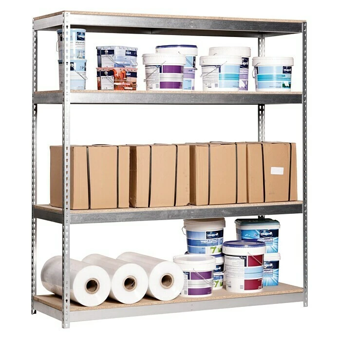 Simonrack Ecoforte Metall-Schwerlastregal L X B X H: 45 X 180 X 200 Cm, Traglast: 400 Kg/Boden, Anzahl Böden: 4 Stk., Stecken, Silber