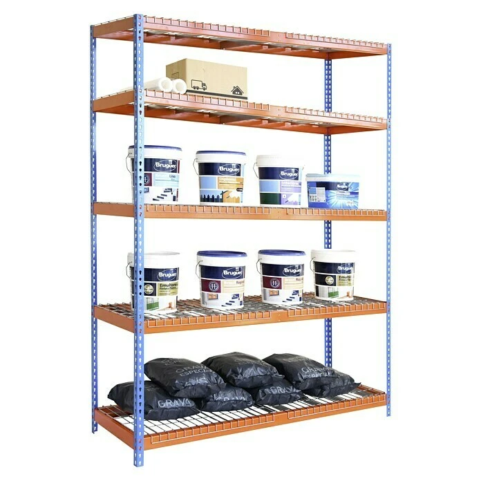 Simonrack Ecoforte Metall-Schwerlastregal Rex L X B X H: 60 X 180 X 200 Cm, Traglast: 400 Kg/Boden, Anzahl Böden: 5 Stk., Stecken, Blau/Orange