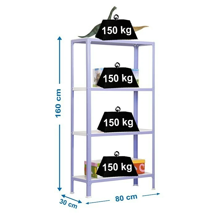 Simonrack Homeclick Metallregal Mini L X B X H: 30 X 80 X 160 Cm, Traglast: 150 Kg/Boden, Anzahl Böden: 4 Stk., Lila