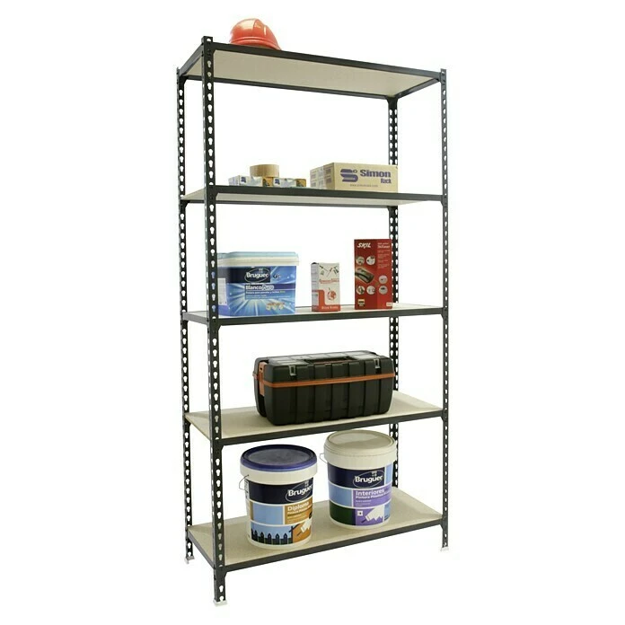 Das Metallregal Maderclick von Simon Rack ist mit einer Traglast von 150 kg pro Boden das ideale Regal für Keller, Garage und Werkstatt. Ausgestattet mit höhenverstellbaren Fachböden bietet es viel Stauraum und die starre Konstruktion sorgt für eine hohe Stabilität und Standsicherheit. Dank des praktischen Stecksystems lässt es sich schnell und einfach montieren. Somit bietet das Metallregal professionellen Stauraum auf hohem Niveau.