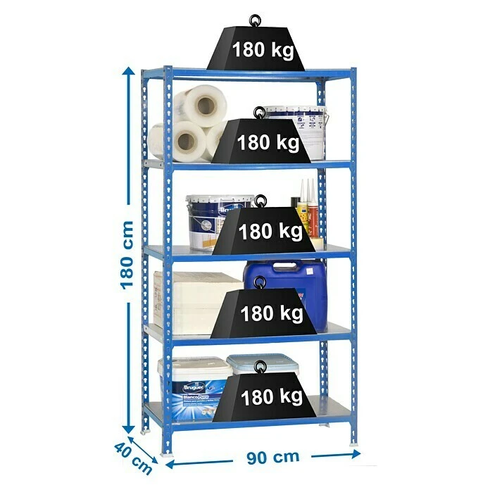 Simonrack Simonclick Metallregal L X B X H: 40 X 90 X 180 Cm, Traglast: 180 Kg/Boden, Anzahl Böden: 5 Stk., Stecken, Blau