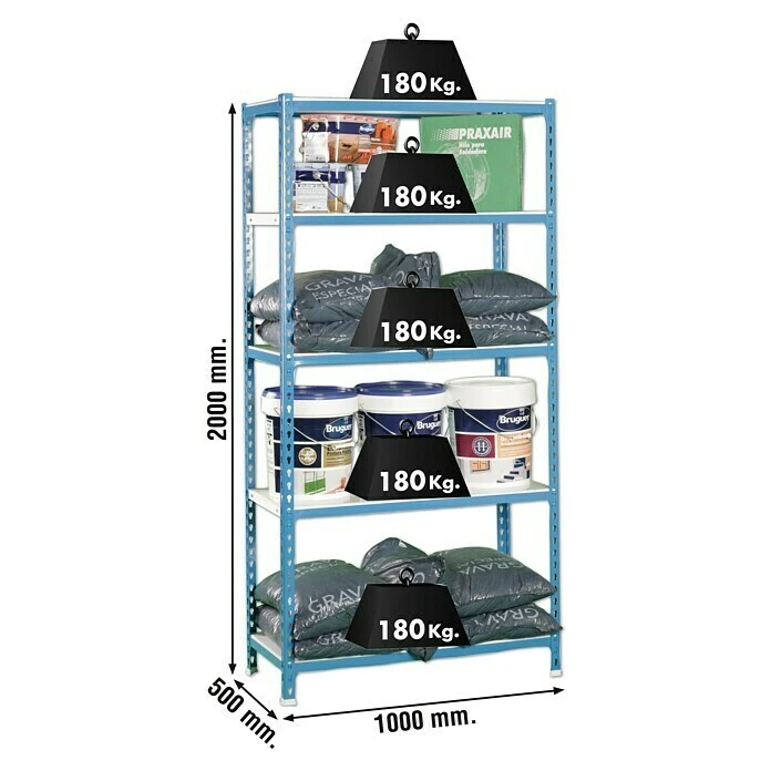 Simonrack Simonclick Metallregal Plus L X B X H: 50 X 100 X 200 Cm, Traglast: 180 Kg/Boden, Anzahl Böden: 5 Stk., Stecken, Blau/Weiß