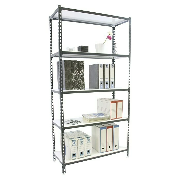 Simonrack Simonclick Metallregal Super Plus L X B X H: 40 X 110 X 200 Cm, Traglast: 180 Kg/Boden, Anzahl Böden: 5 Stk., Stecken, Anthrazit/Weiß