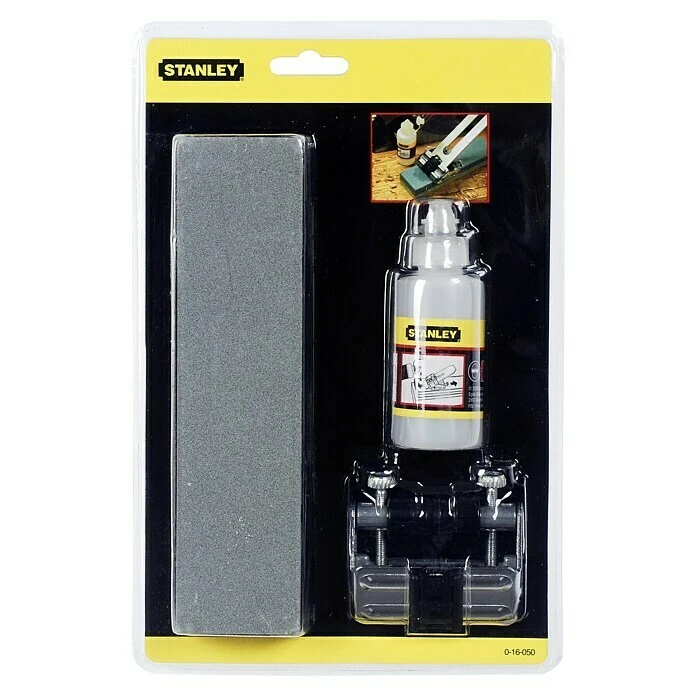 Mit dem STANLEY Universal-Schleif-Set 0-16-050 werden stumpfe Beitelklingen, Hobeleisen und Scheren schnell wieder scharf. Die beiliegende Schneidführung unterstützt Sie bei der Einstellung des Winkels. So erreichen Sie eine präzise, scharfe Schneide. Winkelanschläge von 25°, 30° und 35° sind möglich. Der Wetzstein besitzt zwei unterschiedlicher Körnung 120er und 240er.