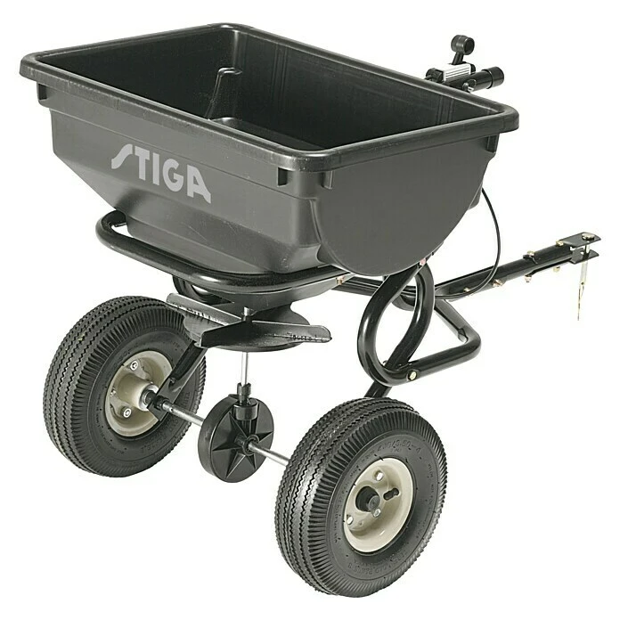 Der Stiga Düngerstreuer eignet sich für den Einsatz im Winter sowie im Sommer. Im Sommer dient der Anhänger als praktische Hilfe beim Düngen des Rasens. Im Winter erleichtert er den Winterdienst, indem er das Verteilen des Sandes erleichtert und die Wege und Einfahrten somit vom Eis befreit. Mit einer Kapazität von 30 Litern und einer Streubreite von ca. 240 cm sorgt der Alpina Düngerstreuer für ein rasches Verteilen des Streuguts. Zur Verwendung des Düngerstreuers wird eine für den Rasentraktor passende Zugöse benötigt. Die Zugöse ist nicht im Lieferumfang enthalten. Der Düngerstreuer ist geeignet für alle Stiga und Alpina Rasentraktoren, die mit einer Zugöse ausgestattet werden können.