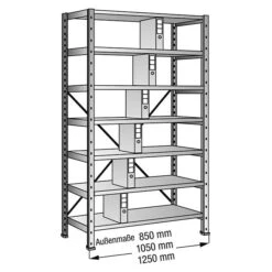 Scholz Aktenregal Grundelement Länge: 1.250 Mm, Breite: 300 Mm, Höhe: 2.280 Mm, Traglast: 60 Kg/Boden, Anzahl Böden: 7 Stk.