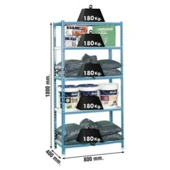 Simonrack Simonclick Metallregal Mini L X B X H: 40 X 80 X 180 Cm, Traglast: 180 Kg/Boden, Anzahl Böden: 5 Stk., Stecken, Blau/Weiß