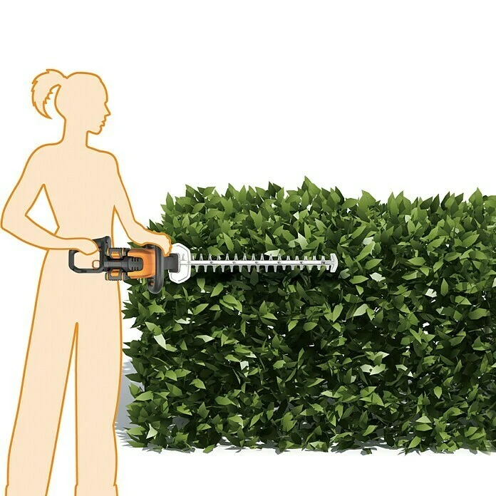 Die Worx 40 V Akku-Heckenschere WG284E sorgt für ein leichtes und kabelloses Arbeiten. Ausgestattet mit einem 60 cm langem lasergeschnittenem Diamantmesser und Dual-Schnittklingen ermöglicht sie präzise und gleichmäßige Schnitte. Der Zweihand-Sicherheitsschalter verhindert ein unabsichtliches Starten. Der Zusatzhandgriff sorgt für eine erhöhte Sicherheit durch bessere Kontrolle – für müheloses Arbeiten in jeder Position. Die Heckenschere wird durch zwei 20 V Li-Ionen Akkus angetrieben. Die 20 V Akkus sind mit allen 20 V und 2 x 20 V Worx Garten- und Elektrowerkzeugen kompatibel.